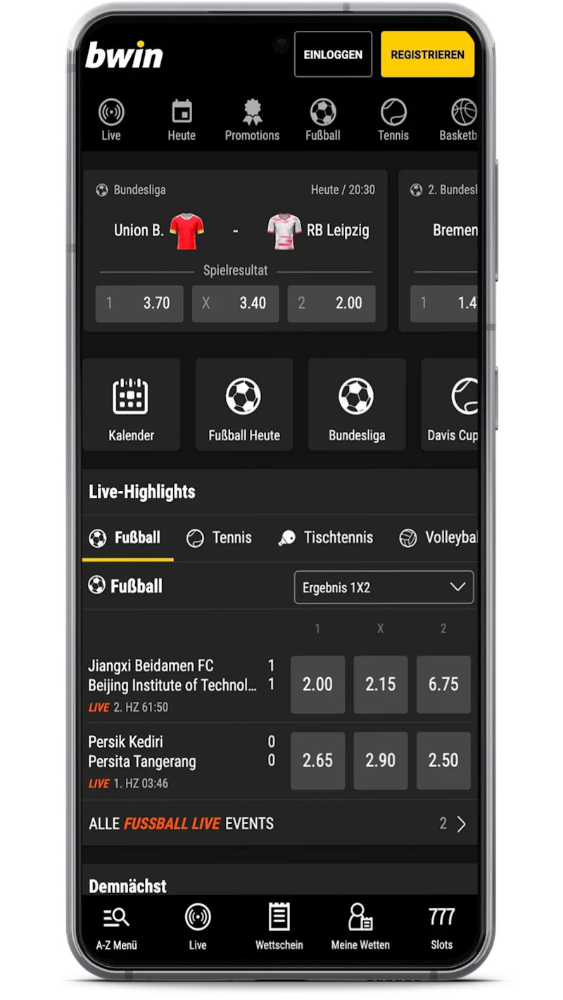 Bwin belegt in unserem großen Wettanbieter-Test 2023 Platz 15 mit 85/100 Punkten. (Screenshot: HAPPYBET)