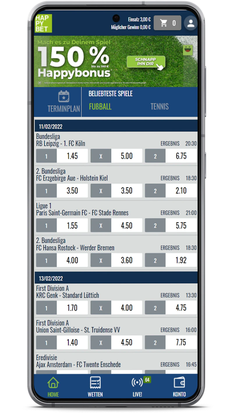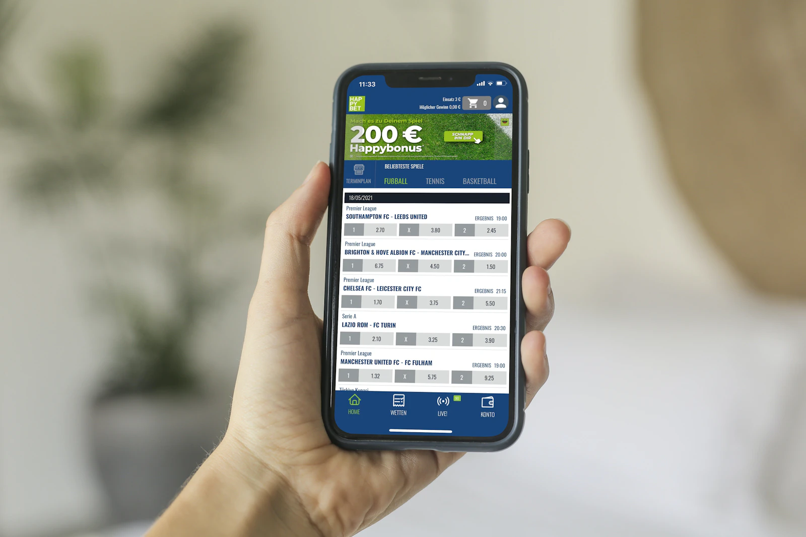 Durch die wirklich sehr gute HAPPYBET Sportwetten App sind zudem auch Sportwetten von unterwegs sehr bequem umsetzbar und auch die Wettquoten können sich sehen lassen.
